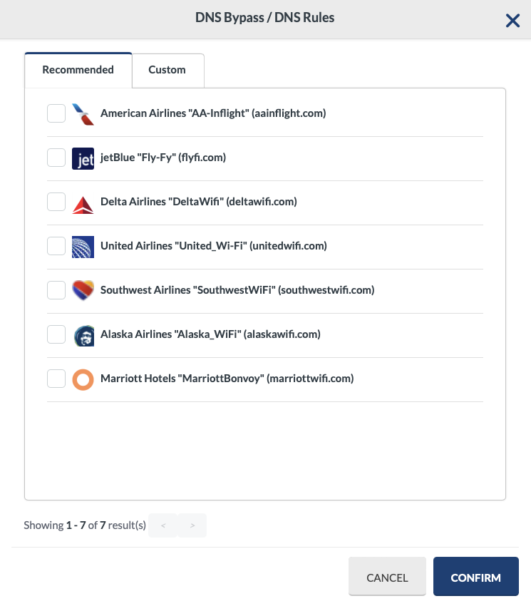 - Automatically block other third party internet browsers and applications that can conflict with the DNS Filtering: Click “Customize this selection” to choose the browsers and apps to block.