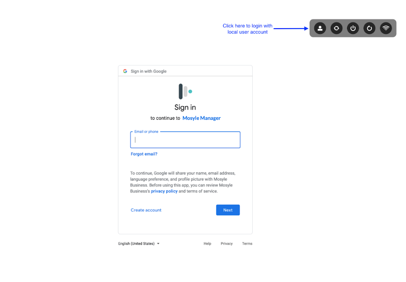 Do not allow Sign In with Local User: Force users to authenticate via Mosyle Auth in order to access the Mac. In order to authenticate via Mosyle Auth, the Mac must have a valid internet connection. If the Mac does not have an internet connection, the user will be unable to login. If this option is unchecked, users will be able to login using the local user login to access the Mac if there is no internet connection. When logging in locally, the user will need to click the icon of a person's silhouette and enter their user account name and password.